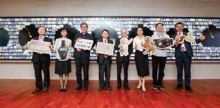 口袋牛店携手创利空间为故宫建置的智慧文物互动导览墙及轮播墙,,今日正式启用。。。(左四:口袋牛店新事业暨投资管理总部副总经理杨本豫、、右四:故宫博物院院长吴密察、、、、右三:太极影音董事长黄宝云)