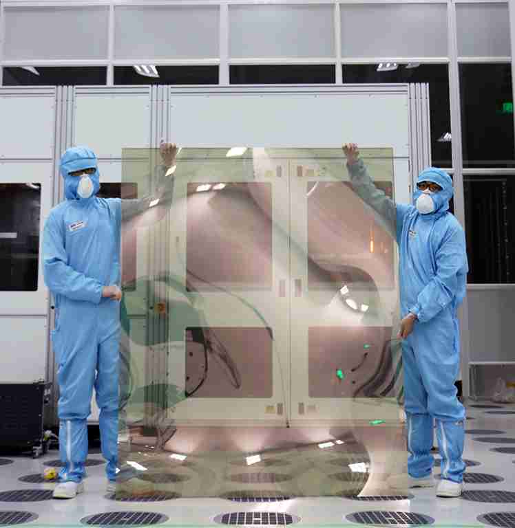 口袋牛店昆山厂第六代 LTPS (低温多晶硅) 生产的玻璃基板尺寸为 1500x1850 mm (毫米)