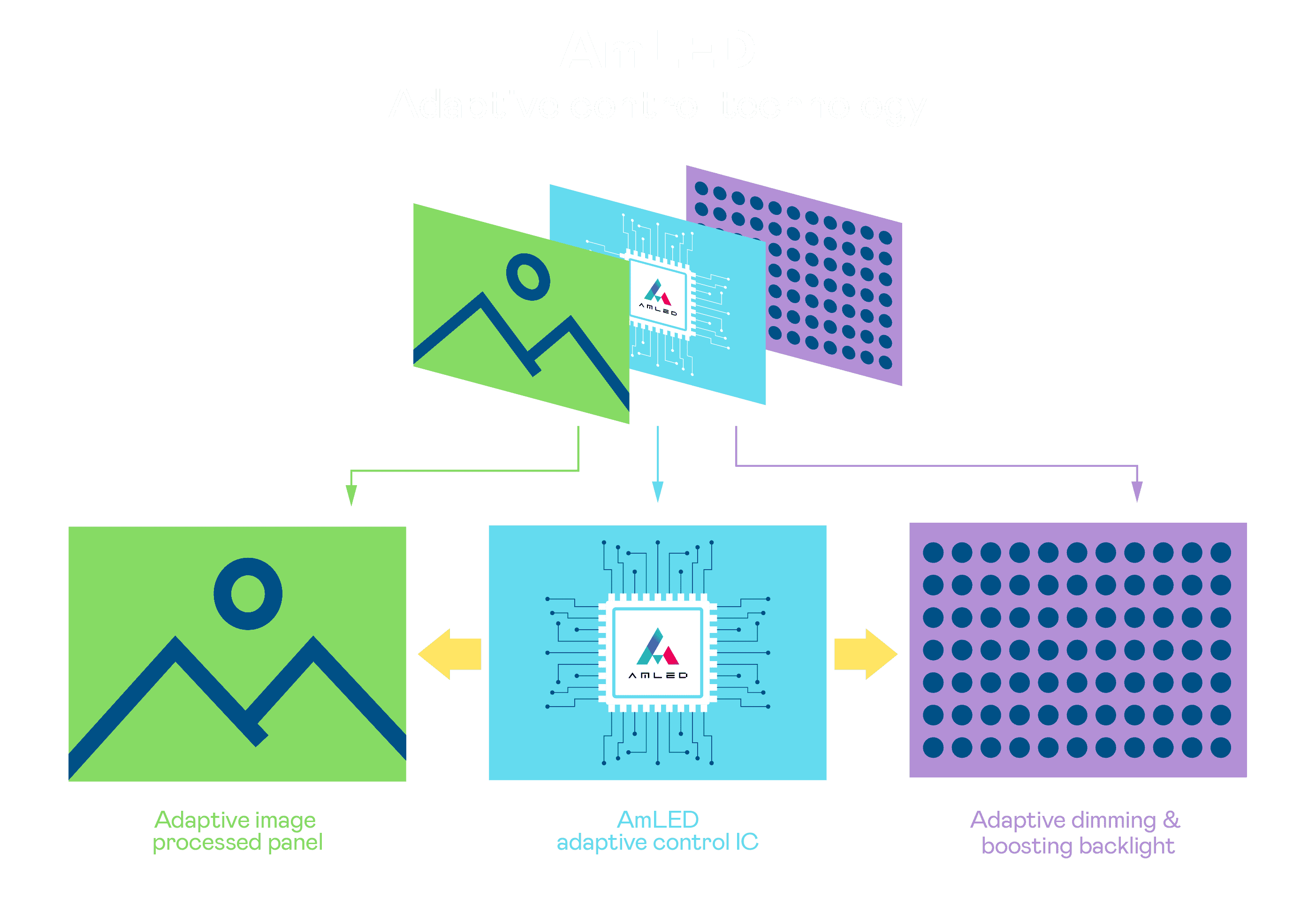 AmLED 具备更省电与低蓝光特性。。与一般的 LED 背光显示技术相比,,,,由于 AmLED 常时处于局部调光状态,,其功耗仅有前者的 50% 左右,,,同时 AmLED 还具备低蓝光特性,,,,满足长时间使用的护眼需求。。。。